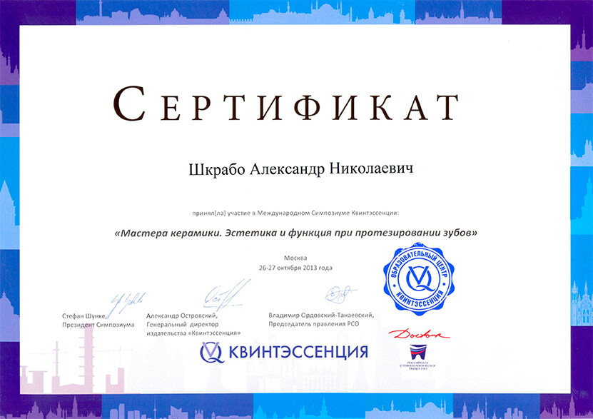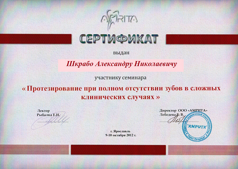Доктор Шкрабо Александр Николаевич замечательно относится к своимпациентам, я довольна результатом его работы. Он смог максимально четкоувидеть ситуацию, что не могли сделать в других клиниках, где мне ничего необъясняли. Врач работает размеренно и абсолютно профессионально,получается эстетично и удобно.